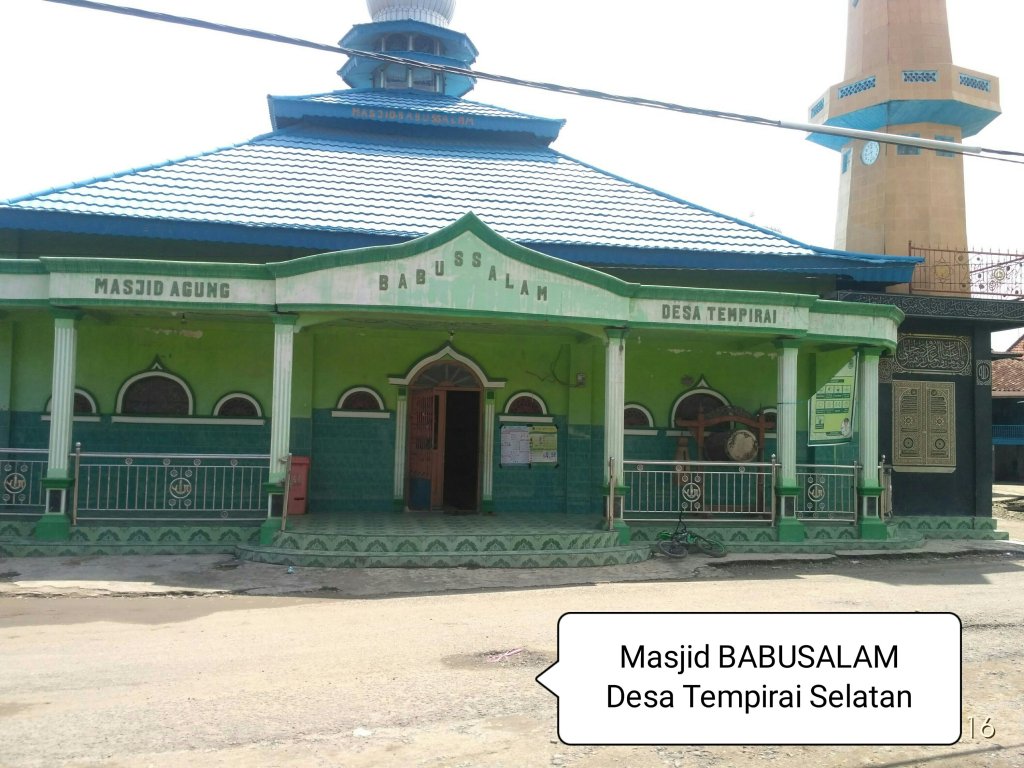 Masjid yang Berdampingan dengan balai induk desa pertama di Desa Tempirai Raya ini, Seiring perkembangan zaman dan pemekaran Desa Tempirai, dari Masjid tertua inilah cikal bakal Pembangunan Masjid dan Musholla terus bertambah, sehingga Masjid BABUSALAM banyak melahirkan Masjid dan Musholla di Tempirai Raya, antara lainya :